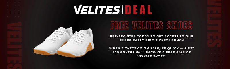 *We have a maximum capacity of 500 Tickets available for this event. Make sure you Pre-register today to to get access to our Super Early Bird Ticket Launch. When tickets go on sale, be quick — first 300 buyers will receive a FREE pair of Velites Shoes!
